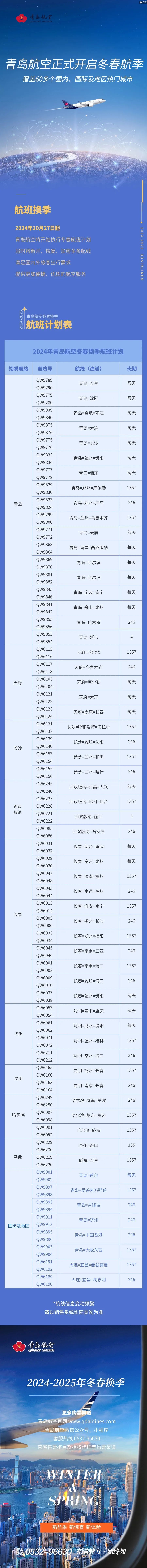 青岛航空2024冬春航季即将开启