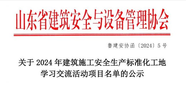 入选山东省2024年修建施工清静生产标准化工地学习交流运动项目。。。。。。。。