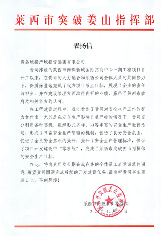 莱西国际招商中心项目被山东省住房和城乡建设厅评为2024年度全省住房城乡建设系统重点工程立异创优优胜奖;;;;;;