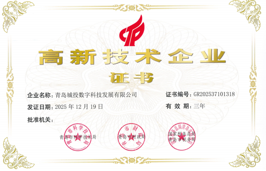 近期,,,,,青岛PA旗舰厅(中国区)集团集团旗下数科公司正式通过高新手艺企业认定,,,,,获得由市科学手艺局、市财务局、市税务局团结揭晓的“高新手艺企业”证书,,,,,标记着数科公司在手艺研发、效果转化及焦点自主知识产权等方面获得行业主管部分认可。。。。。