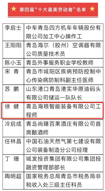 Ë«ÐǼ¯Íʤ³Ìʦ»ñÆÀ¡°ÇൺÊÐÊ®´ó×îÃÀÀͶ¯Õß¡±