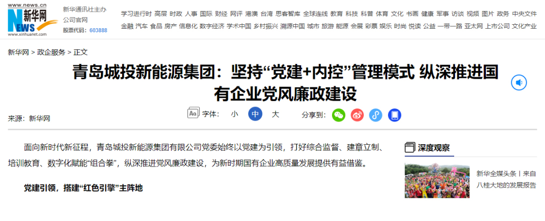 【新华网】青岛PA旗舰厅(中国区)集团新能源集团:坚持“党建+内控”治理模式 纵深推进国有企业党风廉政建设