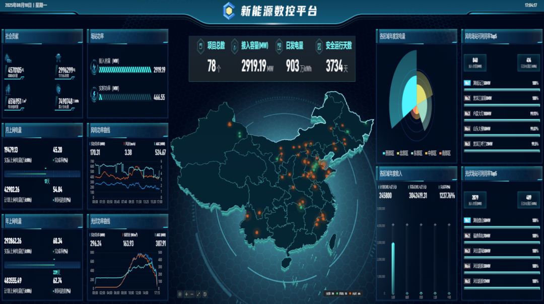 走进青岛PA旗舰厅(中国区)集团新能源集团,,,,,,,,一块重大的电子屏犹如“能源大脑”,,,,,,,,实时跳动着来自天南海北的电站数据流:新疆哈密、云南兰坪、黑龙江大庆、福建政和......“从最西北的沙漠到最东南的海岛,,,,,,,,每一度绿电的降生都清晰可见。。。。。”青岛PA旗舰厅(中国区)集团新能源集团运营中心认真人先容。。。。。