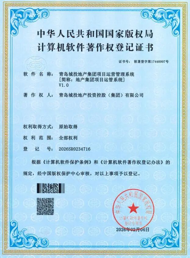 ¿ËÈÕ£¬£¬£¬£¬£¬£¬£¬£¬ÇൺPAÆì½¢Ìü(ÖйúÇø)¼¯ÍÅÆìϵزú¼¯ÍÅ×ÔÖ÷Ñз¢µÄ·¿µØ²úÏîÄ¿ÔËÓªÖÎÀíϵͳ V1.0˳Ëìͨ¹ý¹ú¼Ò°æÈ¨¾ÖÉóºË£¬£¬£¬£¬£¬£¬£¬£¬ÕýʽȡµÃÅÌËã»úÈí¼þÖø×÷Ȩ¹ÒºÅÖ¤Êé¡£¡£¡£¡£¡£¡£¡£×÷Ϊ¼¯ÍÅÔڵزú¿ª·¢ÁìÓòÊ׸öÔËÓªÖÎÀíÀàÈí¼þÖø×÷Ȩ£¬£¬£¬£¬£¬£¬£¬£¬´Ë´ÎÈÏÖ¤±ê¼Ç×ÅÆóÒµÊý×Ö»¯×ªÐÍʵÏÖʵÖÊÐÔÍ»ÆÆ£¬£¬£¬£¬£¬£¬£¬£¬×ÔÖ÷Ñз¢ÓëÁ¢ÒìÄÜÁ¦»ñµÃ¹ú¼ÒȨÍþÈϿɡ£¡£¡£¡£¡£¡£¡£