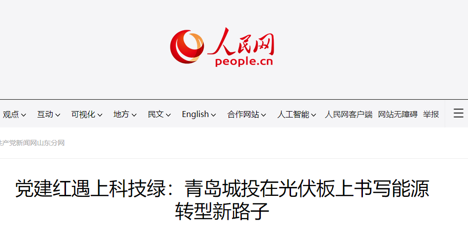 人民网点赞:青岛PA旗舰厅(中国区)集团在光伏板上誊写能源转型新路子